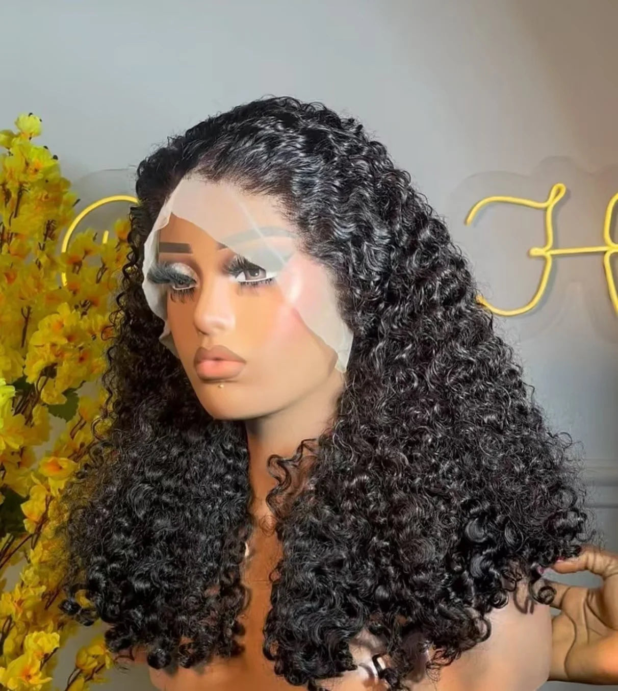 Deep Wave Short Bob Cut Natural Black Color 13X4 HD Lace Front Synthetic Wig For Black Women Preplucked Cosplay Daily Glueless