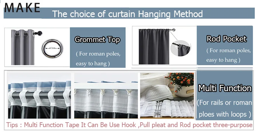 ☺ Curtain Rail -- You can choose 4 Prongs Hooks / Pull Pleated Tape .