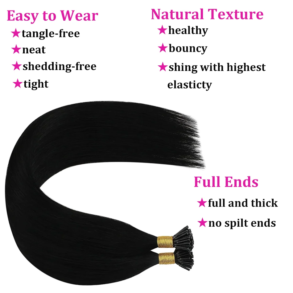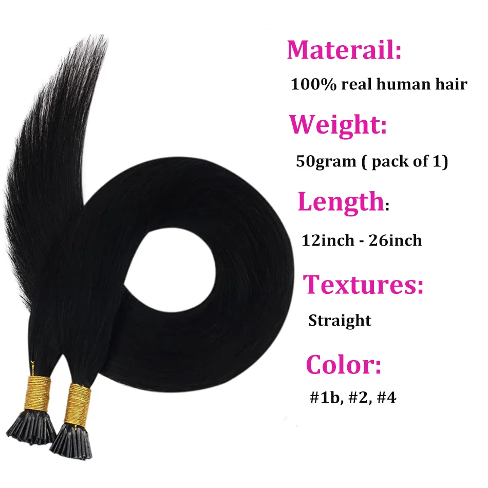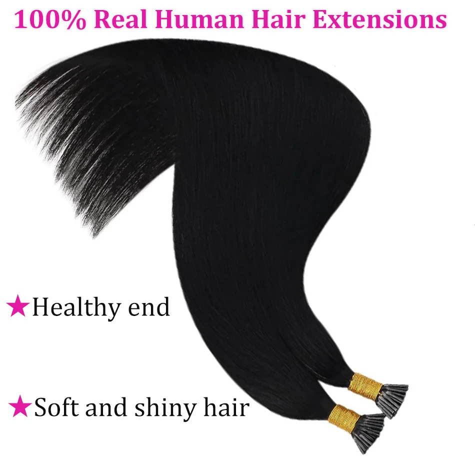 I Tip Hair Extension Straight 100% Human Hair Extension 1g/Strand 50pc/Set Capsule Keratin Natural Fusion Human Hair Extension