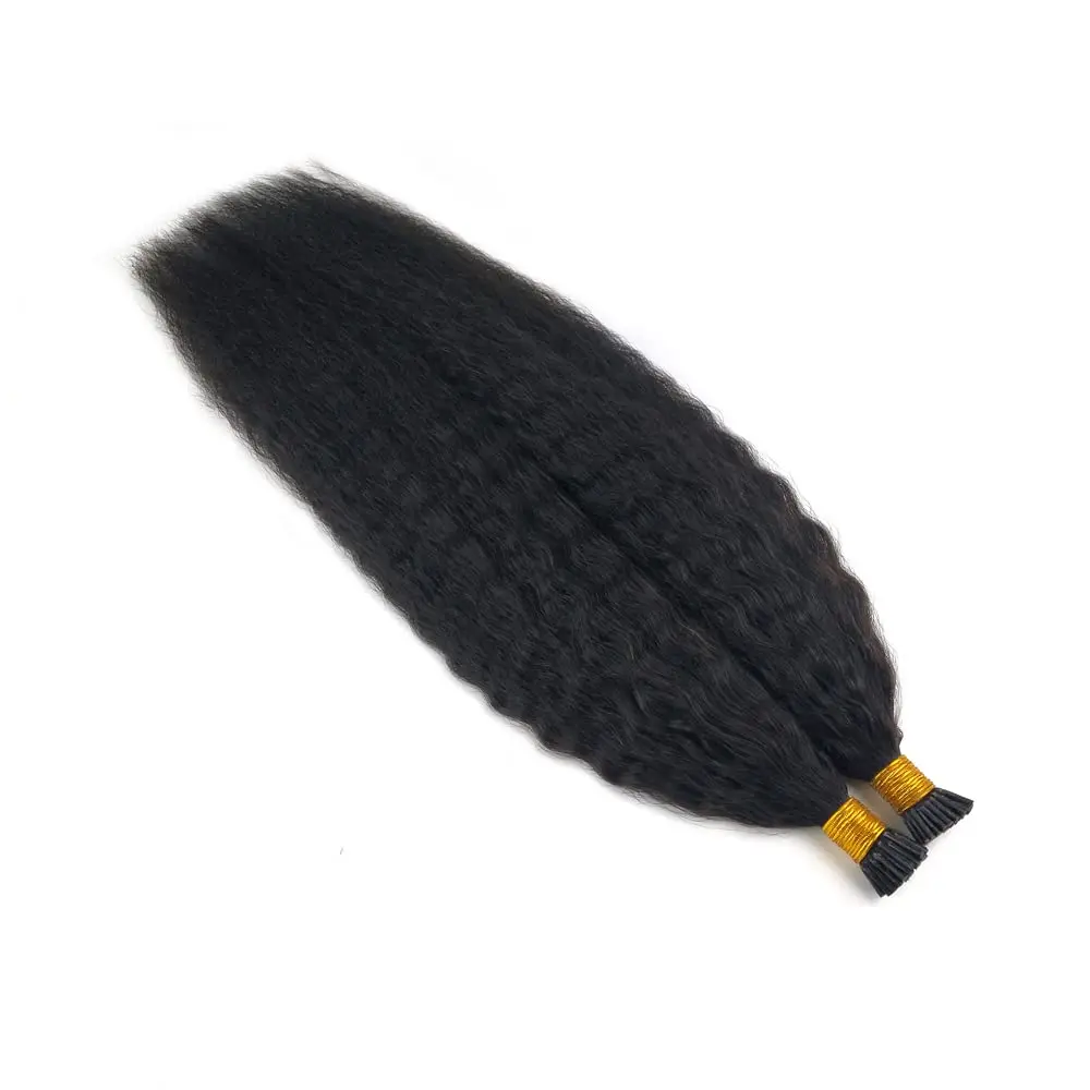 I tip Hair Extensions Kinky Straight Human Hair #1B Pre Bonded Remy Micro Links Human Hair Extensions Natural Black 1g/Strand