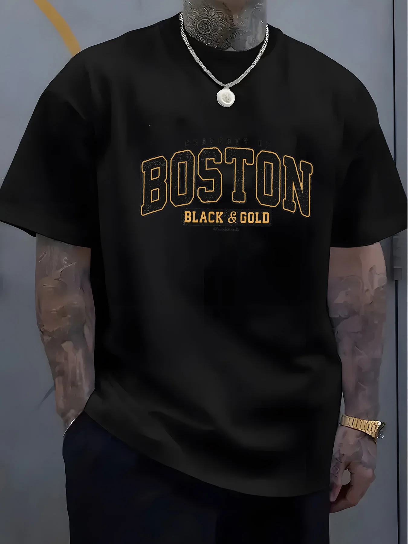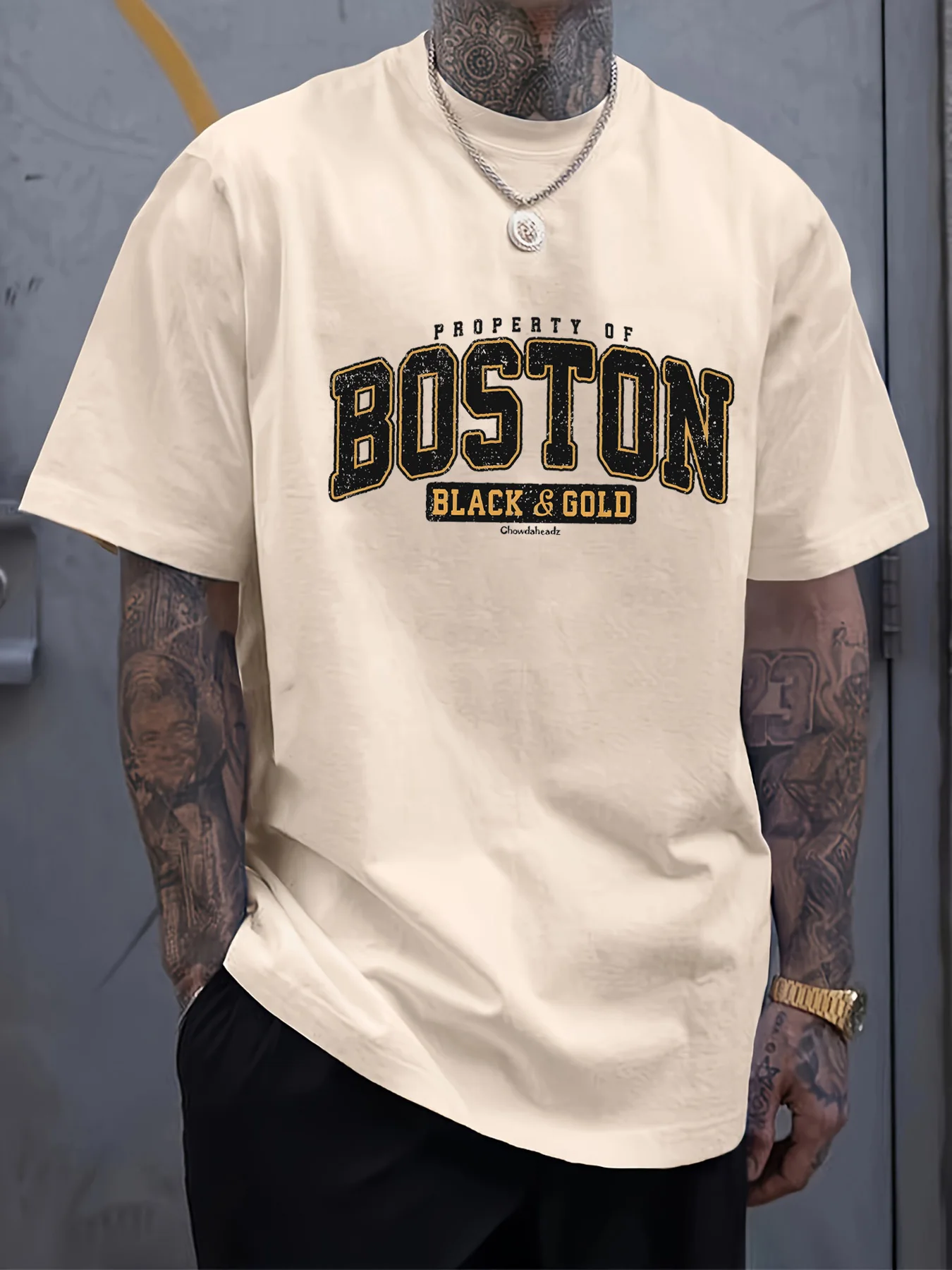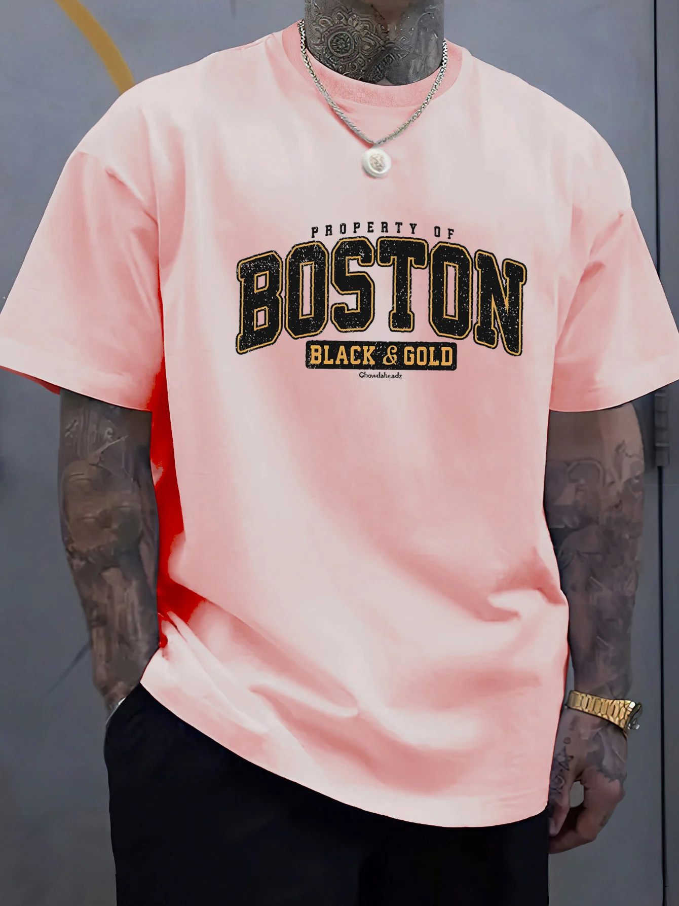 Men's summer 100 cotton fashionable casual loose plus size BOSTON pattern printed sports round neck short sleeved T-shirt top