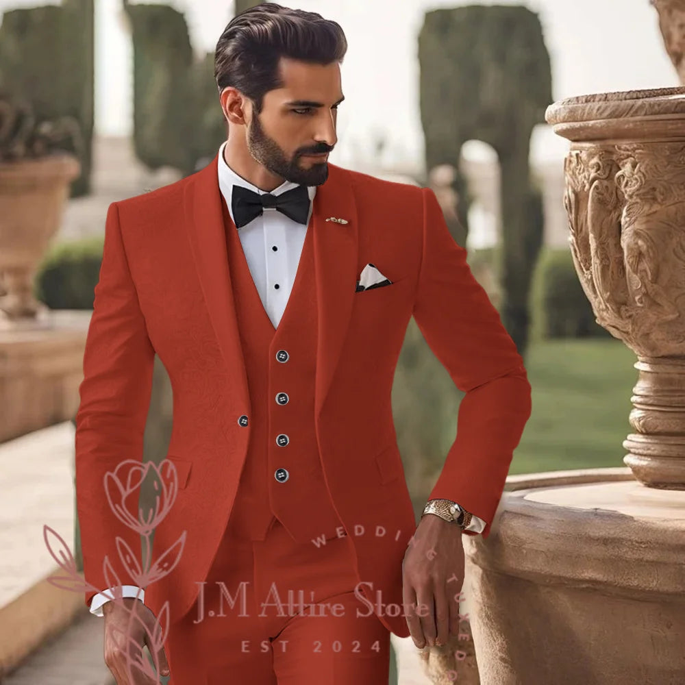 Men's White Jacquard Suit 3pcs Jacket Vest Pants Elegant Formal Fashion Set for Groom Wedding Prom Party Stylish Custom Tuxedo