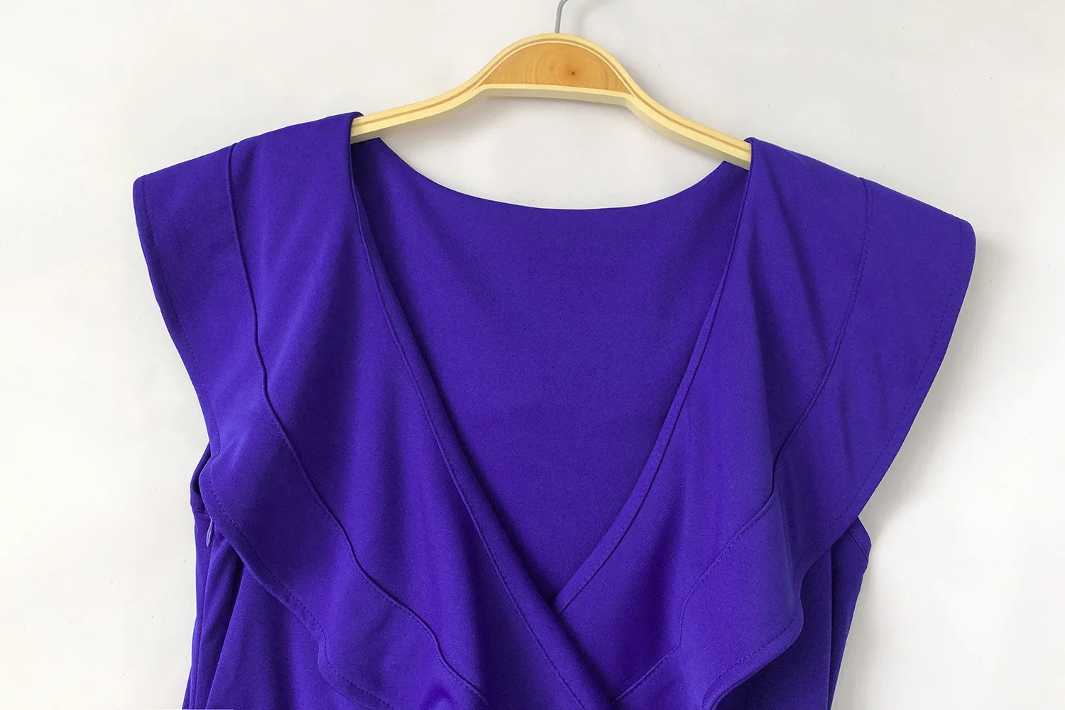 Summer New European and American Sexy V-neck Ruffled Sleeveless Hip Hugging Fashionable Outdoor Skin Friendly Dress