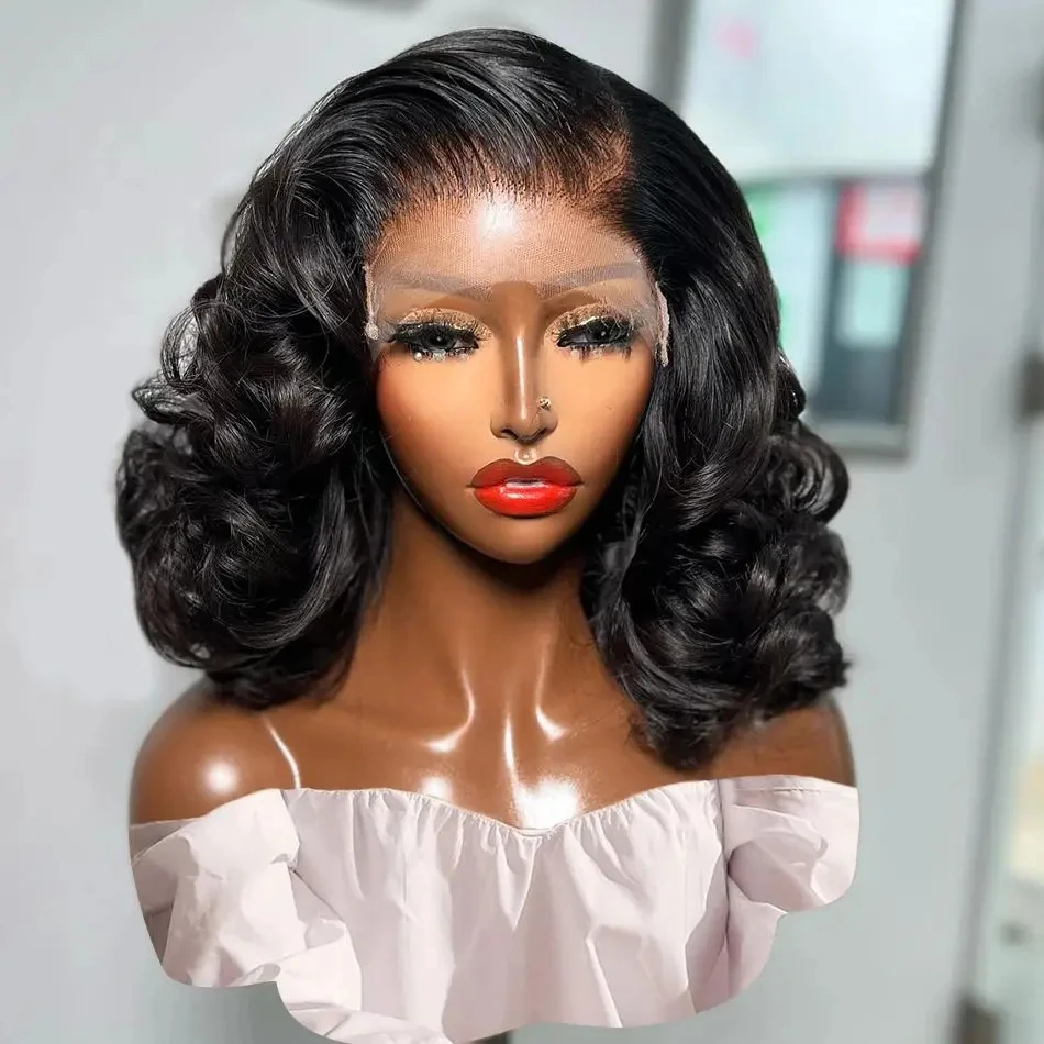 Transparent HD Short Bob 180 200 Density Human Hair Wig Body Wave 13x Wave Brazilian