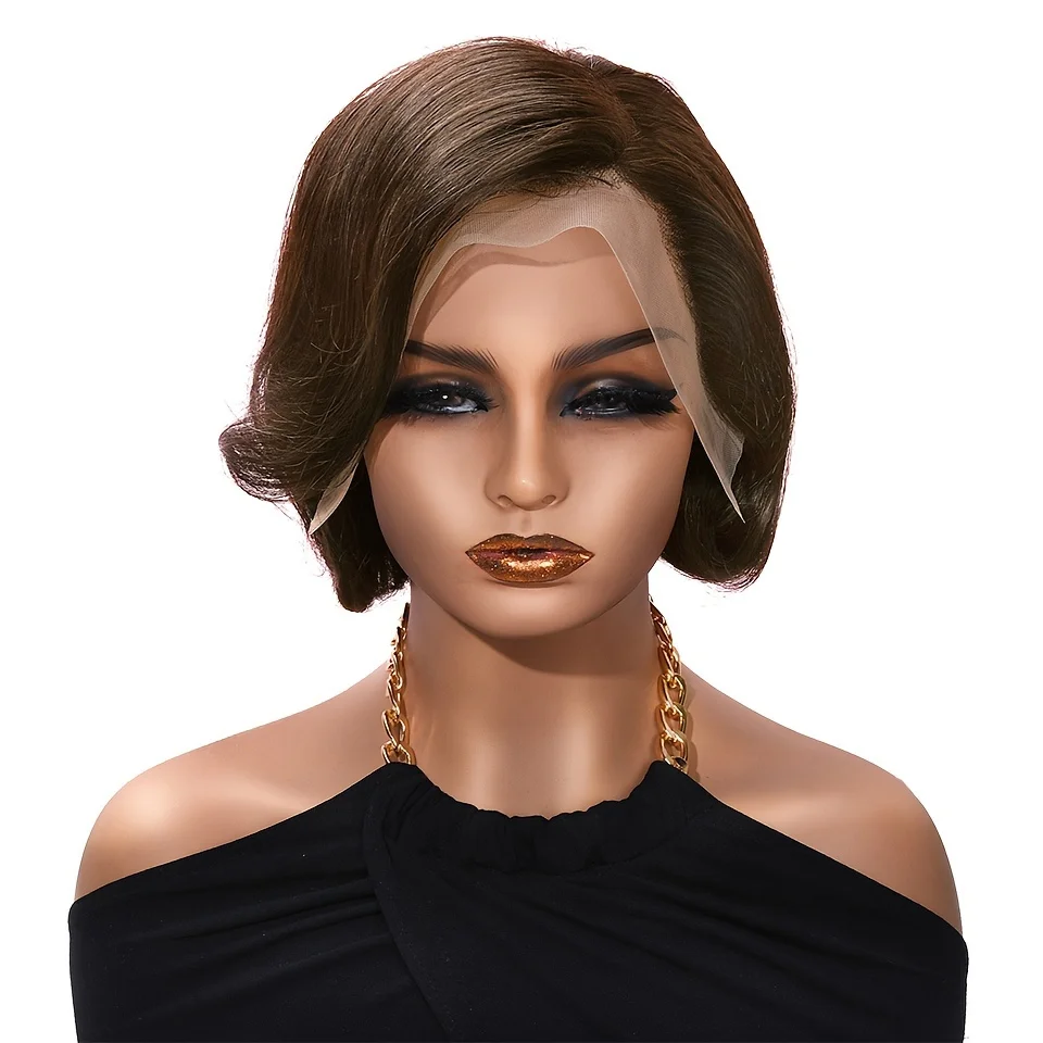 13X4 FRONTAL LACE REMY WIG FOR WOMEN 8 INCH SHORT STRAIGHT PIXIE CUT HUMAM HAIR WIG 427 /NATURAL BLACK
