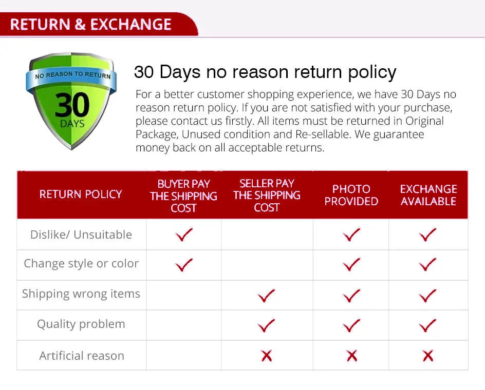 Our Gurantee: 30 days no reason easy return/factory supported