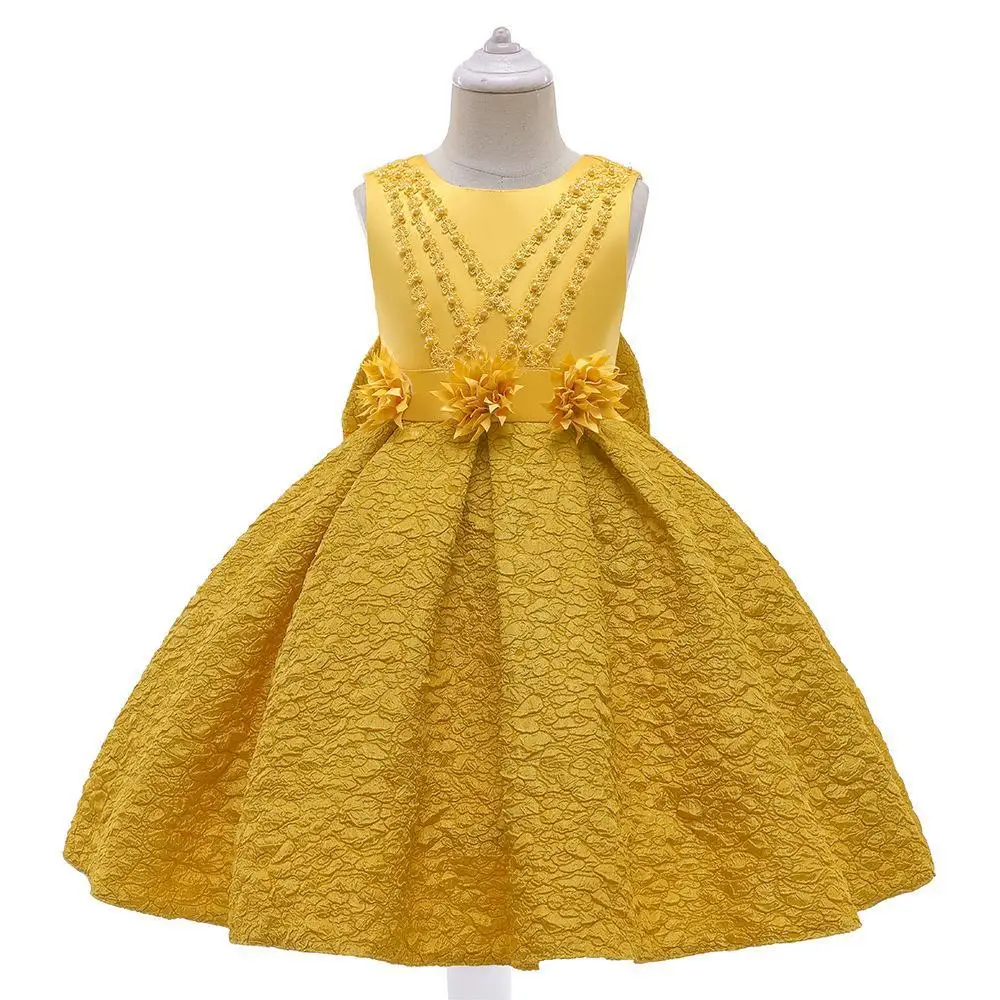 Elegant Dress For Children Evening Dress Girls' Bow Beaded Flower Princess Dress For Birthday Wedding Party Formal Banquet Gown