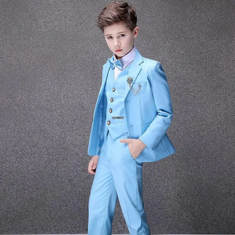 Flower Boys Blue Wedding Suit Kids Party Photograph Suit Teenager Birth Children