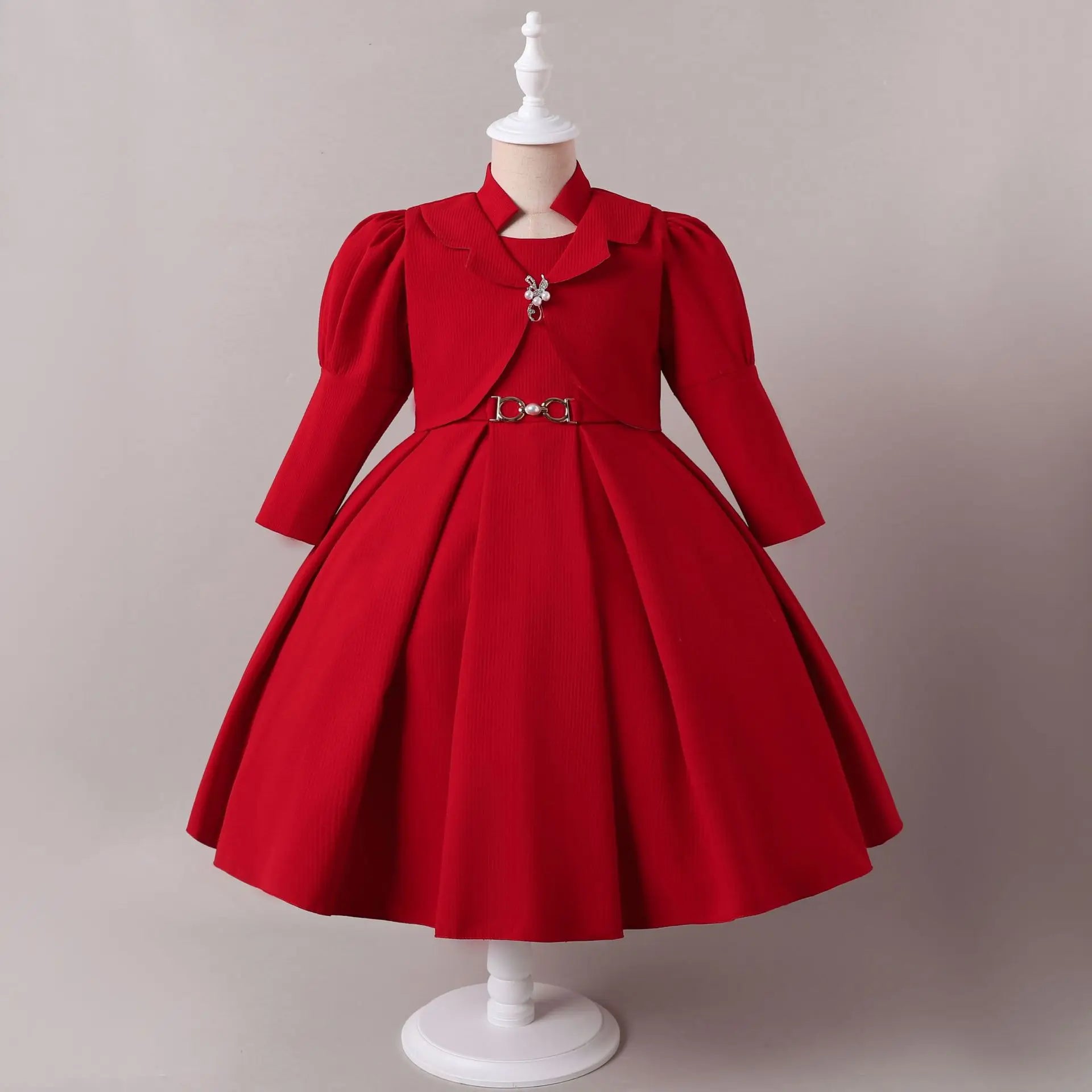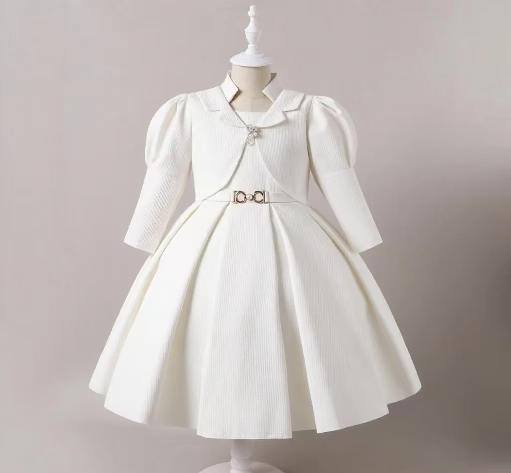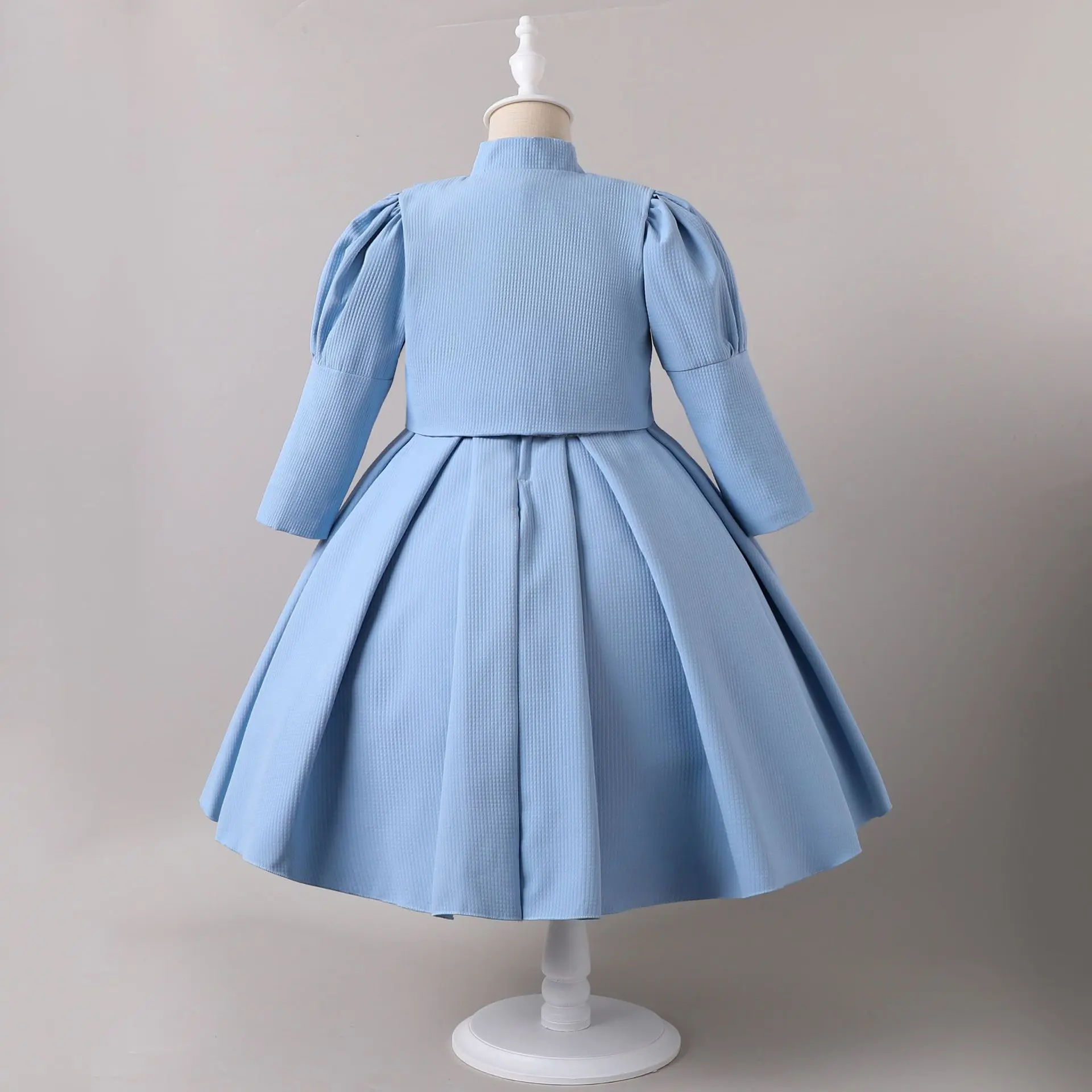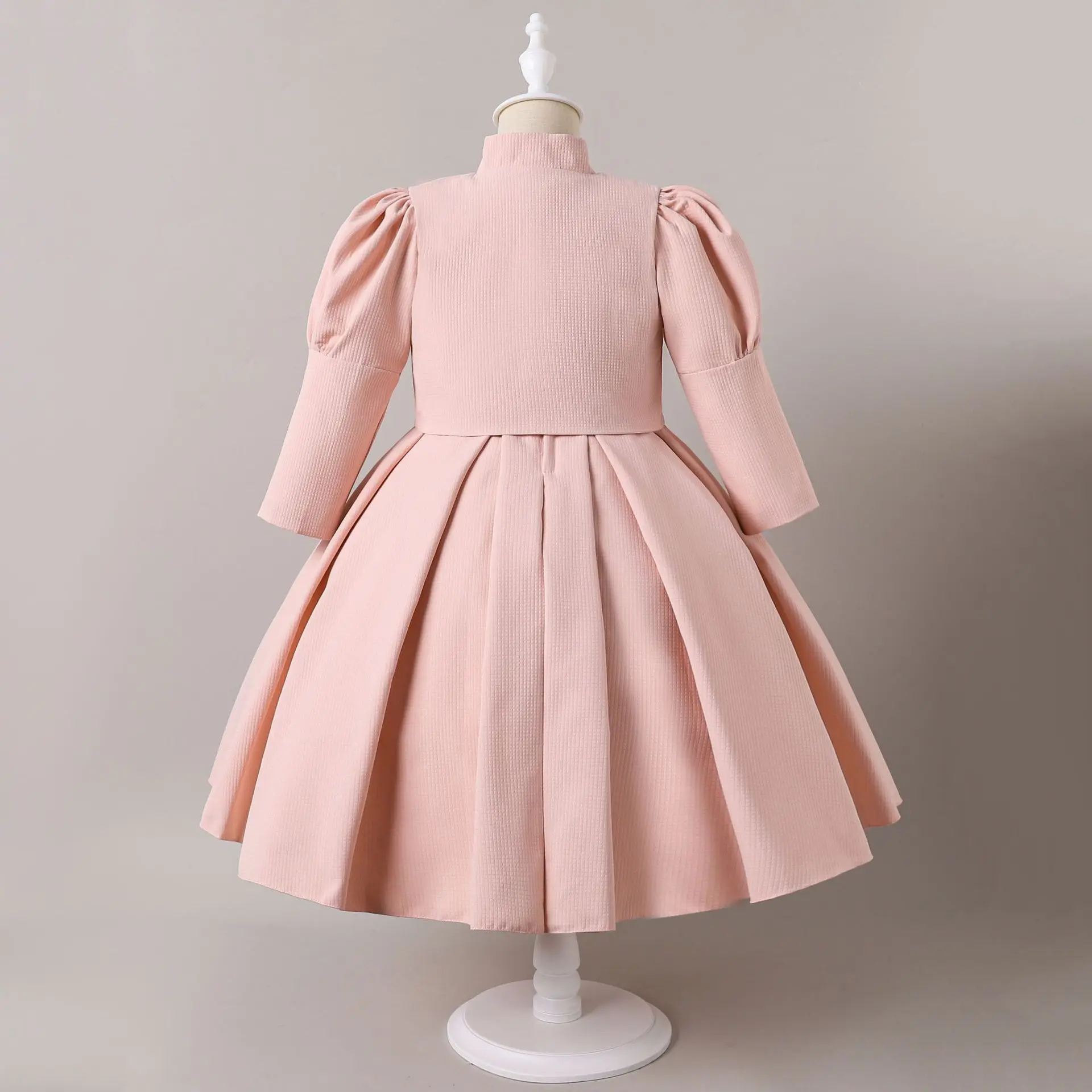 HETISO Gorgeous Elegant Long Sleeve Girls Dress Coat Set Children's Formal Performance Wedding Ball Gown 5-10 Years