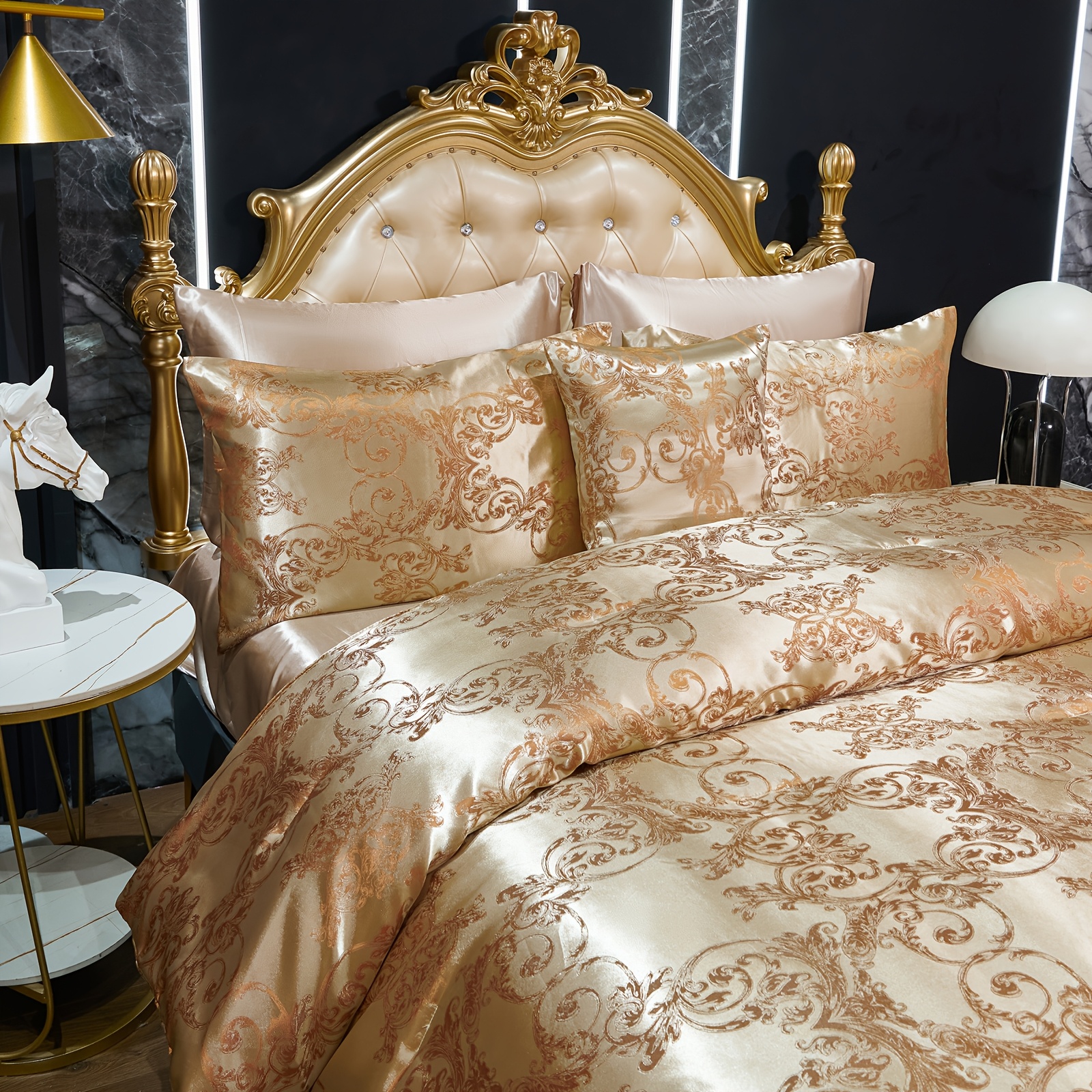Jacquard Comforter Set with Sheet Set Taupe Bedding Set 8pcs Embroidery Neoclassical Floal Pattern Bed Home Decor Soft Comforter Luxury