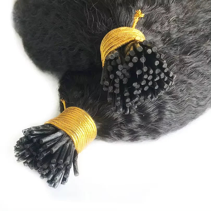 Kinky Straight I Tip Hair Extensions Brazilian Hair Pre Bonded Keratin Stick In Straight I Tip Hair Extensions 50 Strands/Pack
