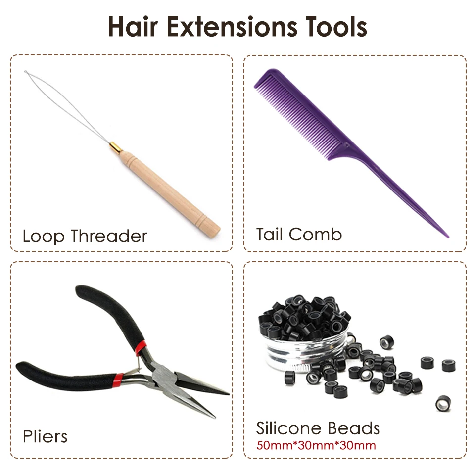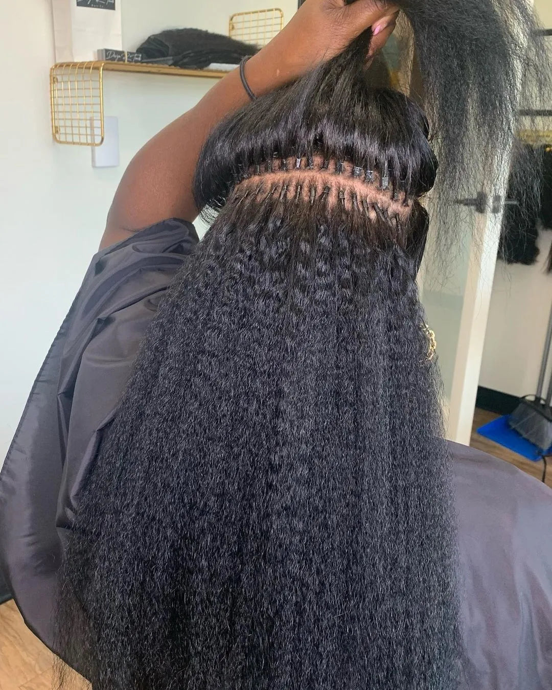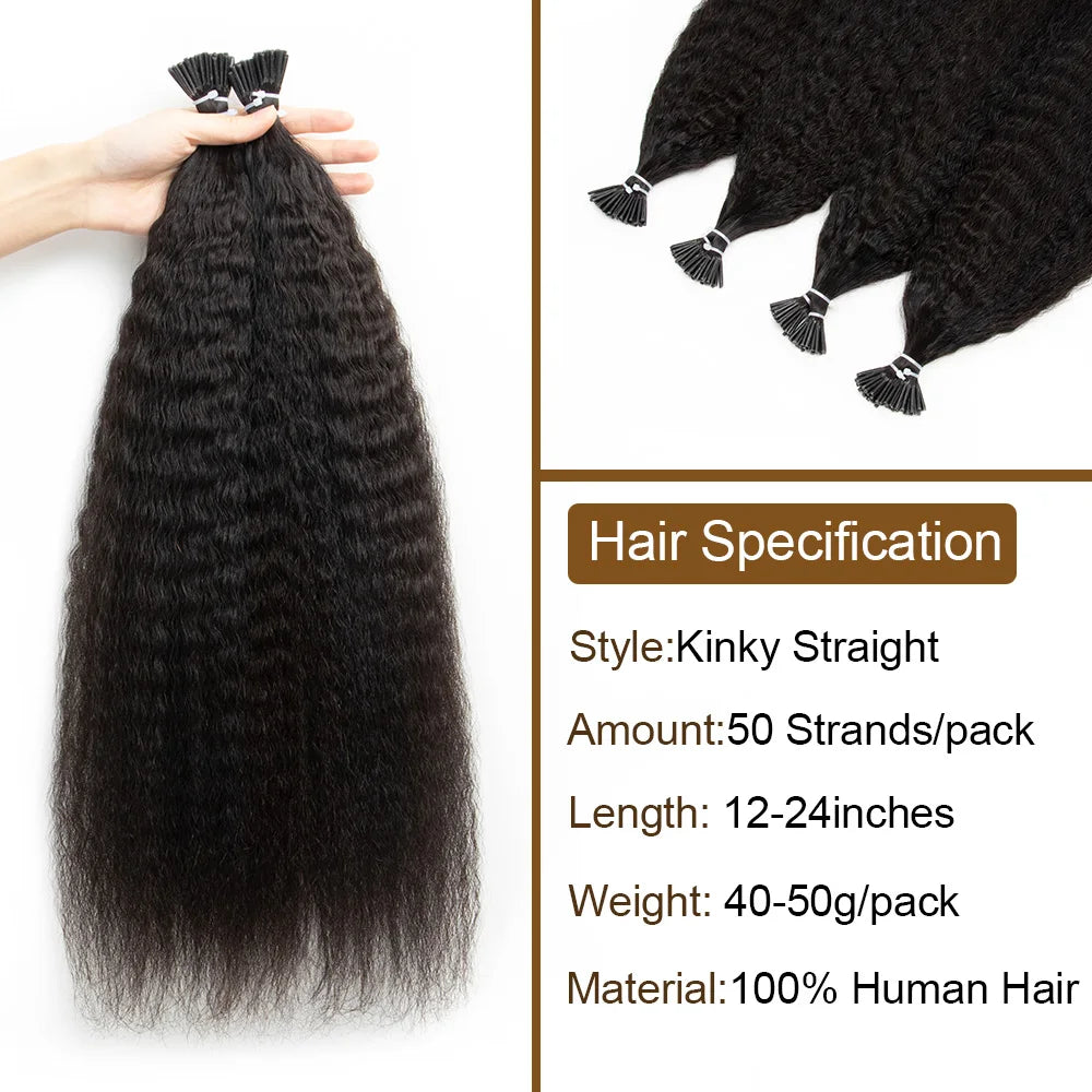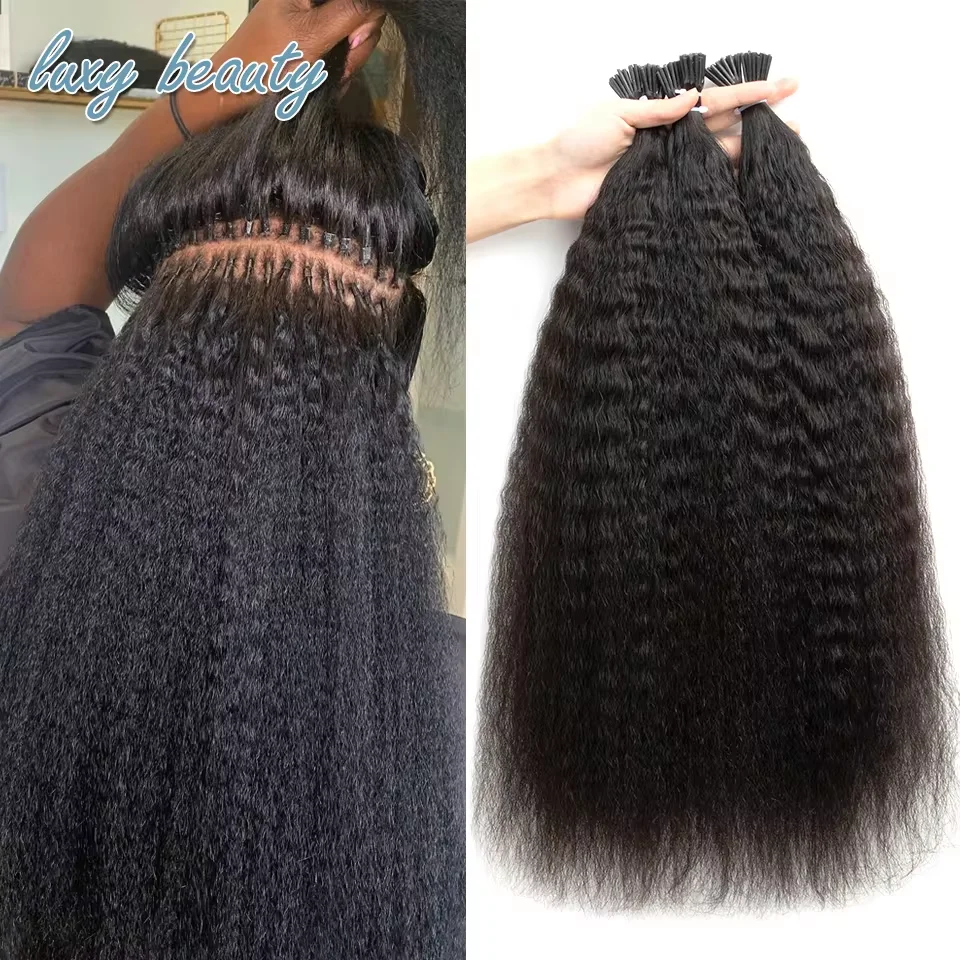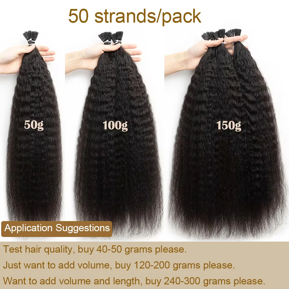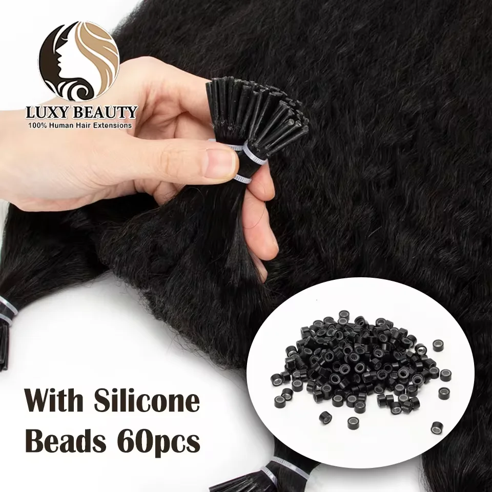 Kinky Straight Microlinks Hair Extensions Human Hair Natural Black Keratin I Tip Nano Ring Hair Extension Silicone Beads 50g/Set