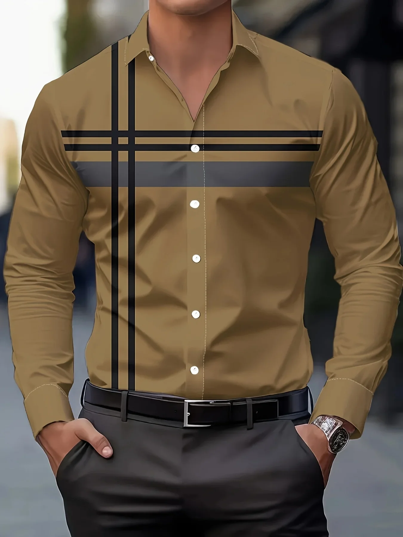 Men's Casual Dress Shirt with Modern Striped Design Regular Fit Long Sleeve