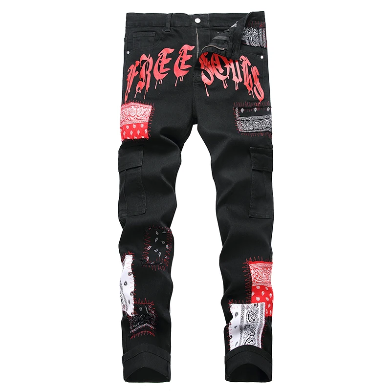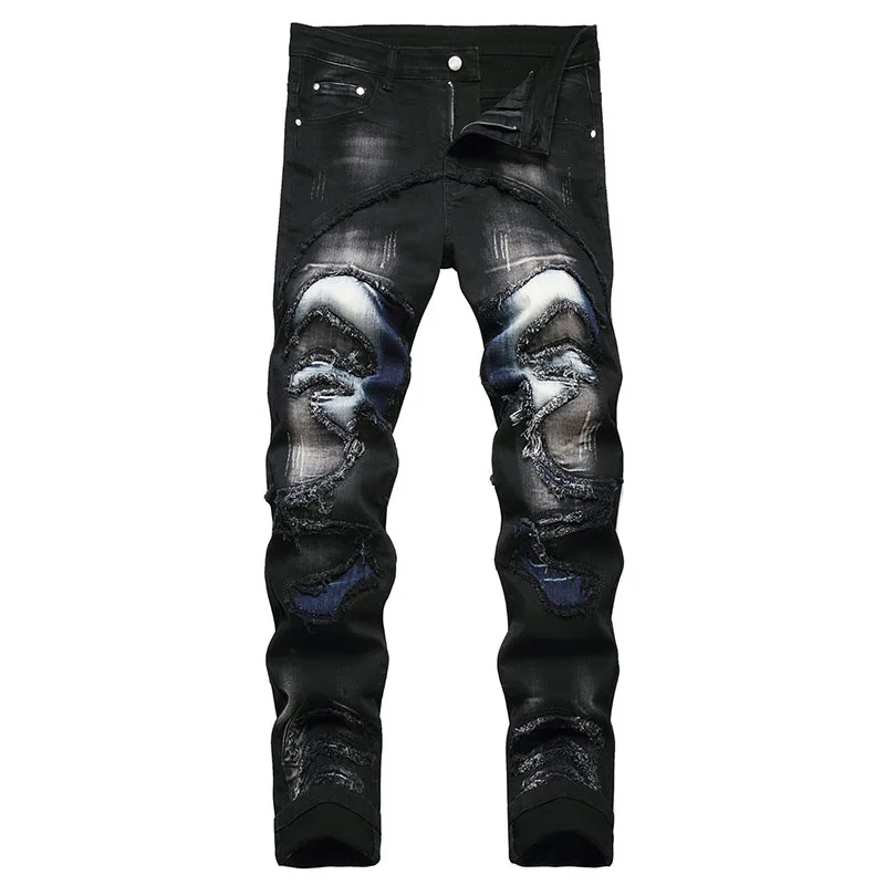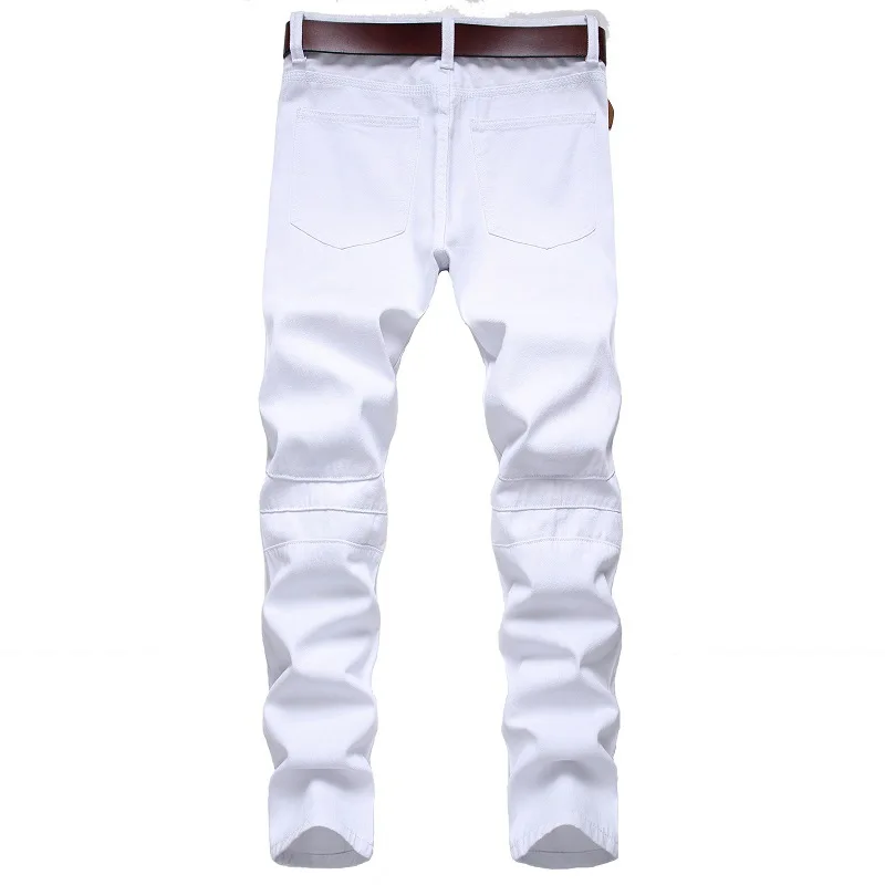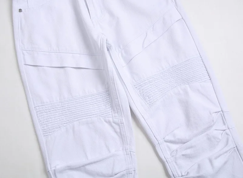 Men's Moto Biker Jeans 2025 New Spring Autumn HIP HOP Punk Streetwear Black White Straight OverSize Denim Pants