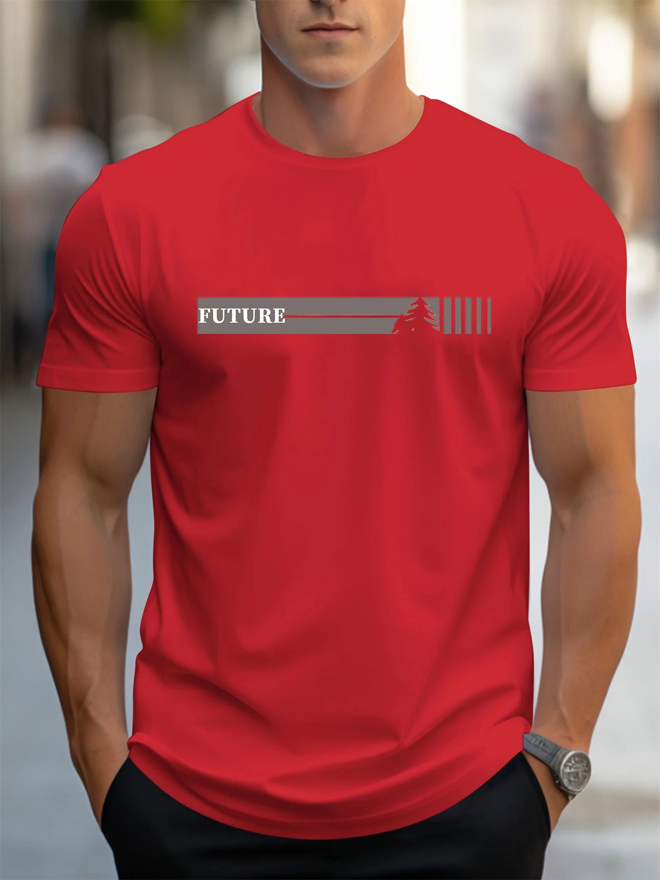 Men's Summer 100 Cotton Fashionable Casual Loose Plus Size Future Pattern Printed Sports Round Neck Short Sleeve T-shirt Top