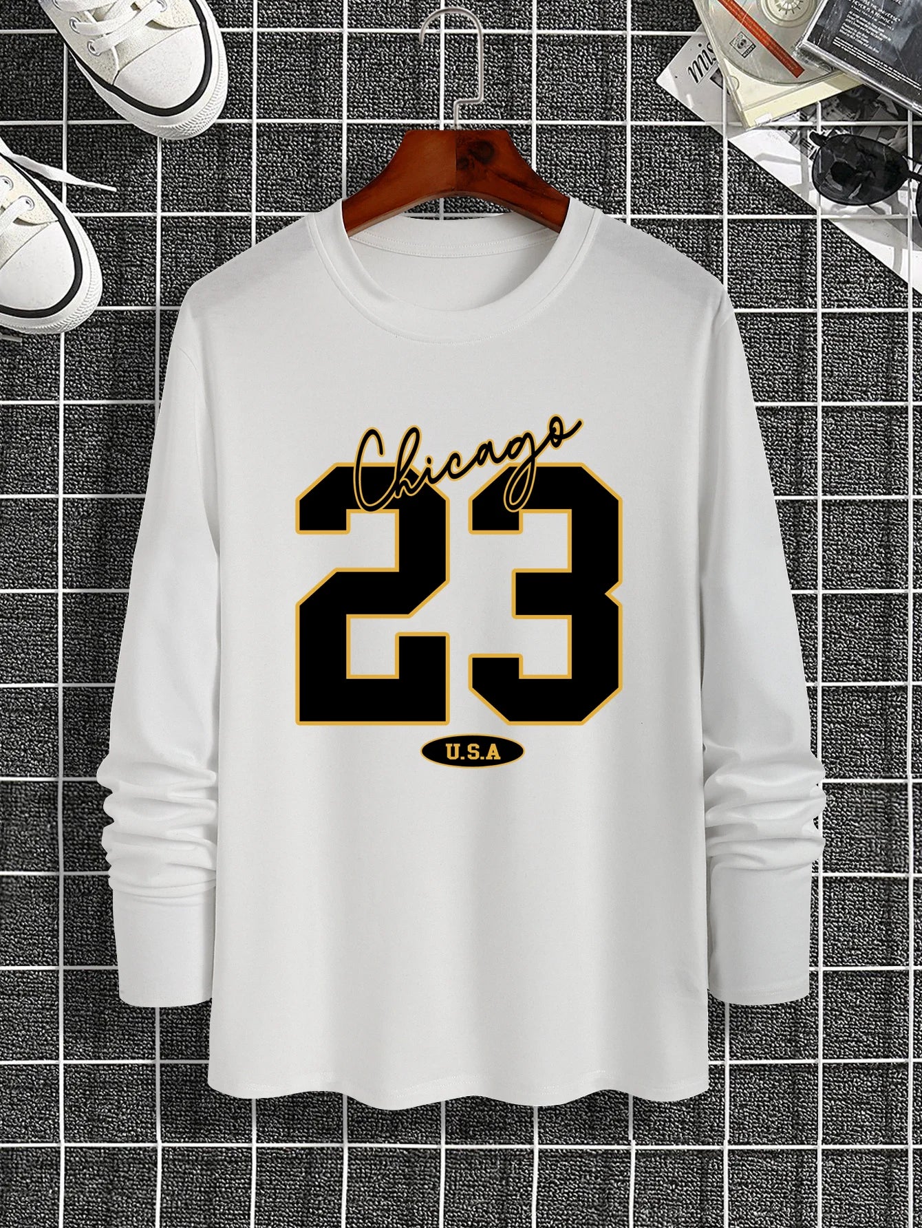 New long-sleeved T-shirt men's printed round neck long-sleeved T-shirt trend versatile casual tops men's clothing summer