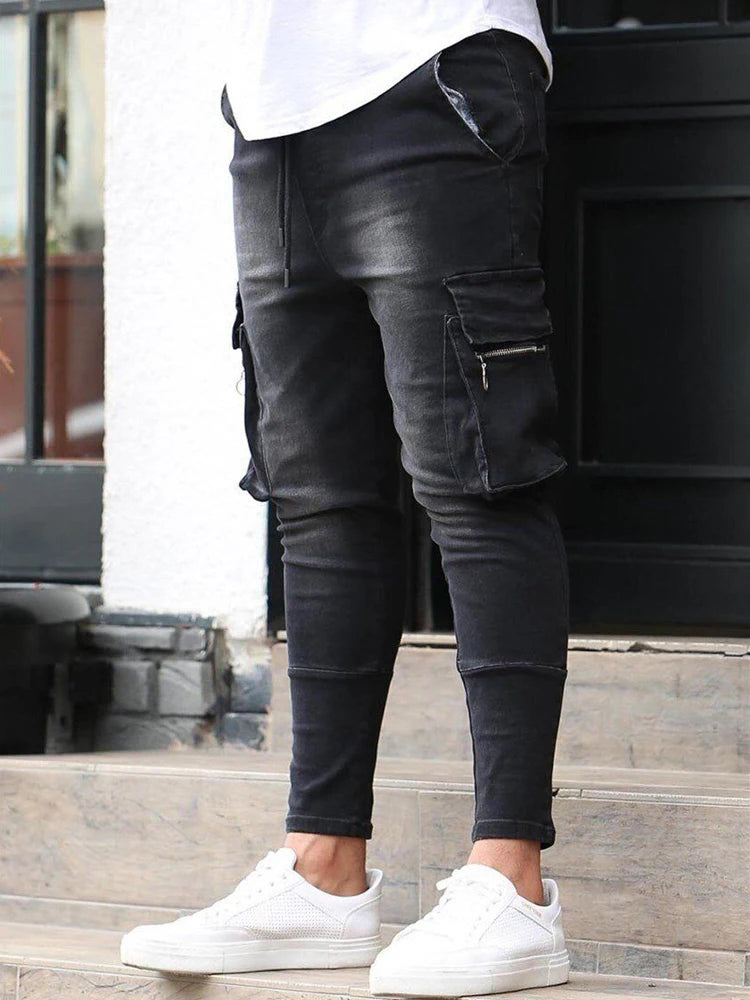 New Men's Slim Fit Stretch Jeans Casual Fashion Multi Pocket Cargo Denim Pants High Jeans Work Hip Hop