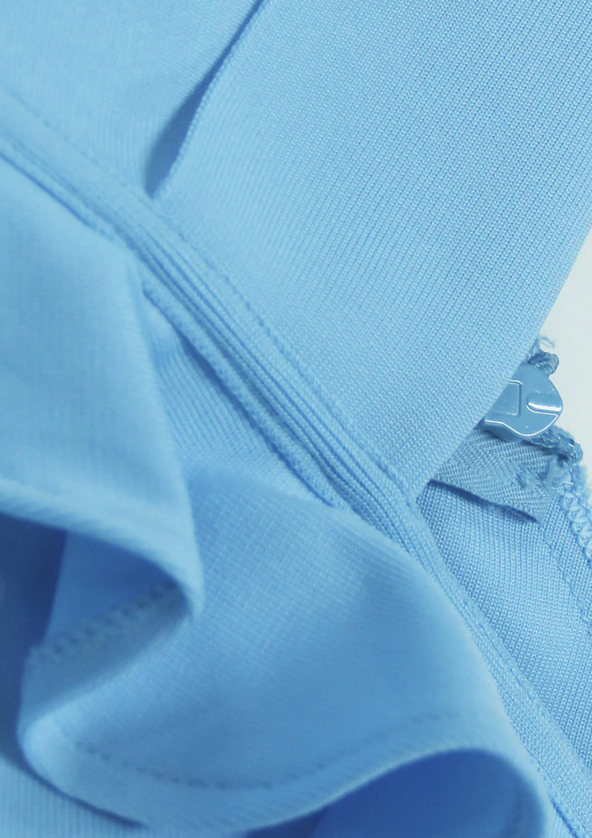 One Shoulder Ruffle Split Thigh Bodycon Midi Elegant Bandage Dress For Coaktail Party