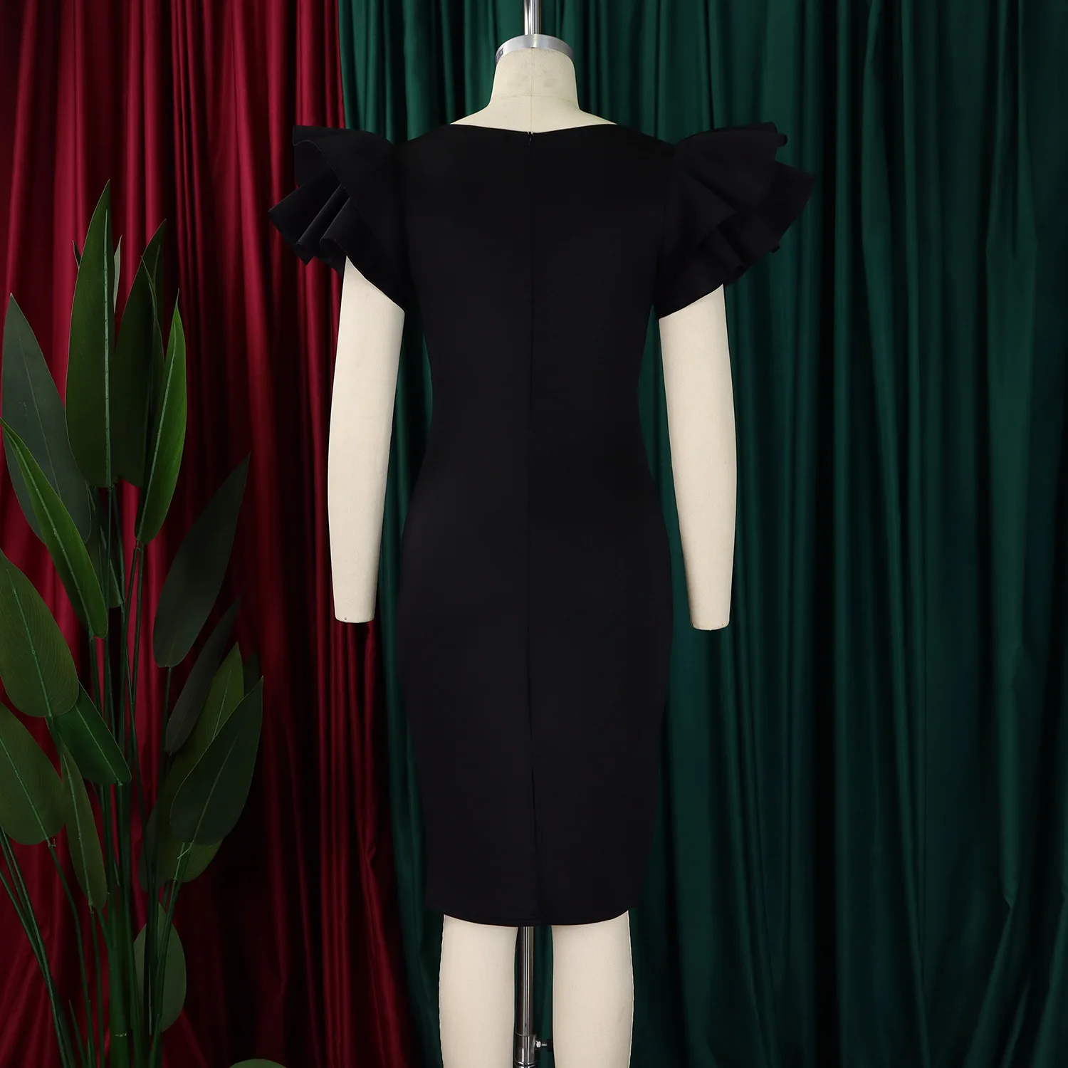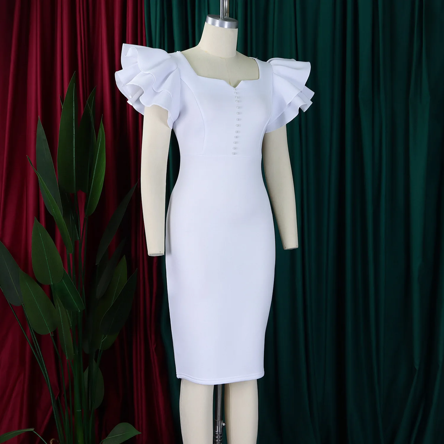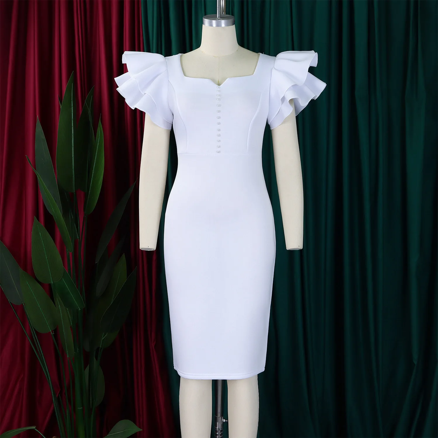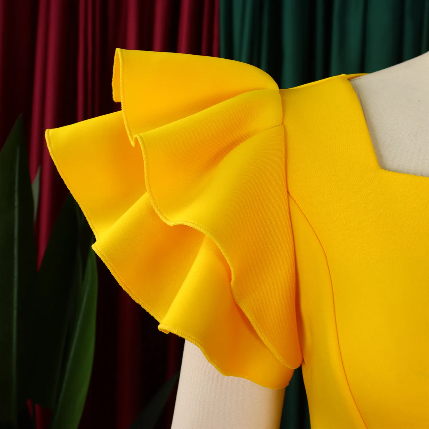 Summer Fashion Women's Nail-Beaded Lotus Sleeve Wrapped Hip Banquet Dress Cascading Style Elegant Evening Gown