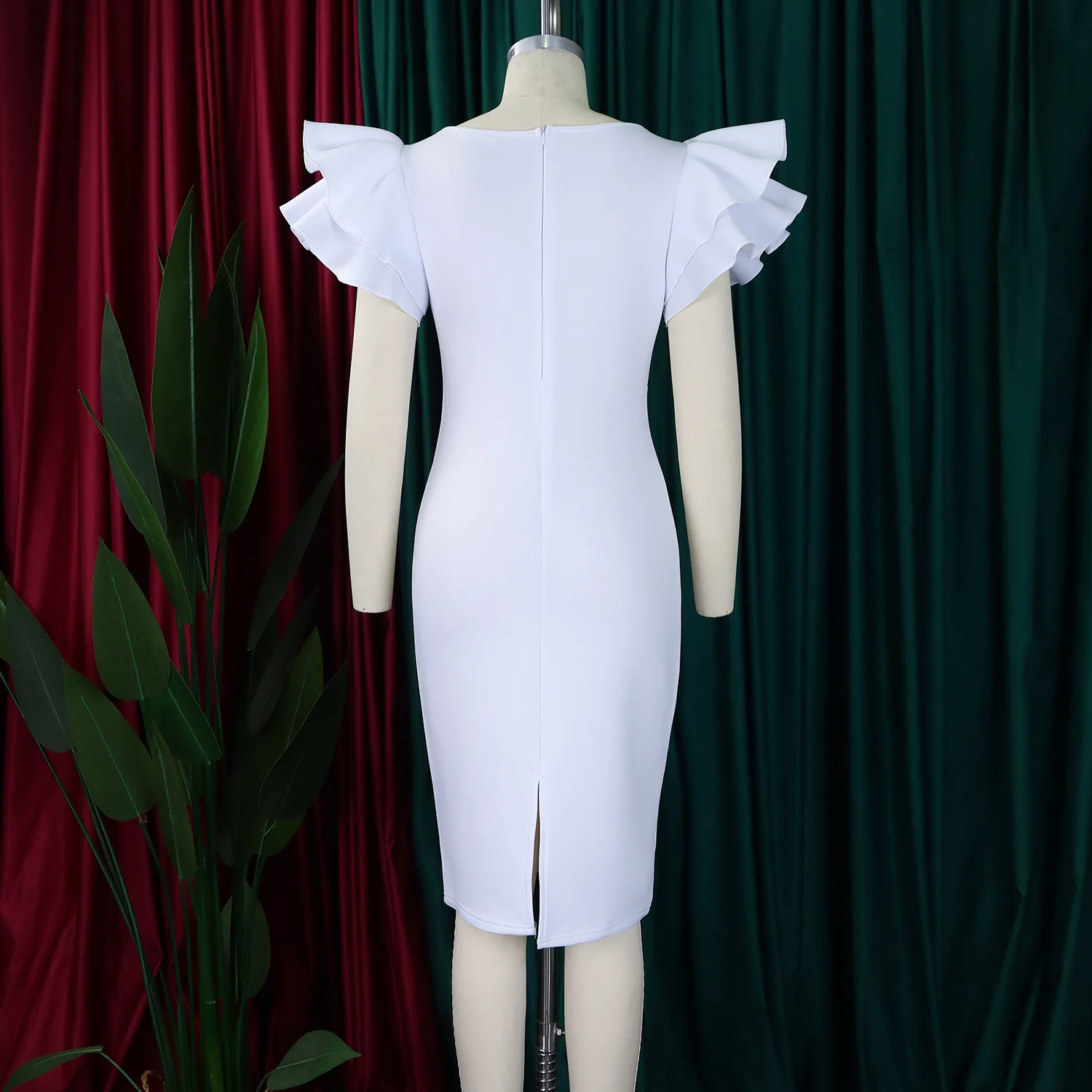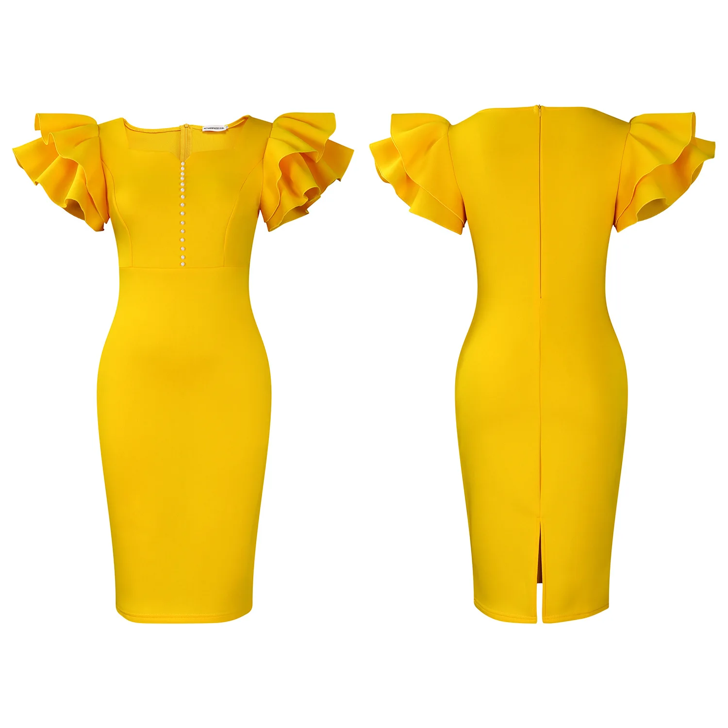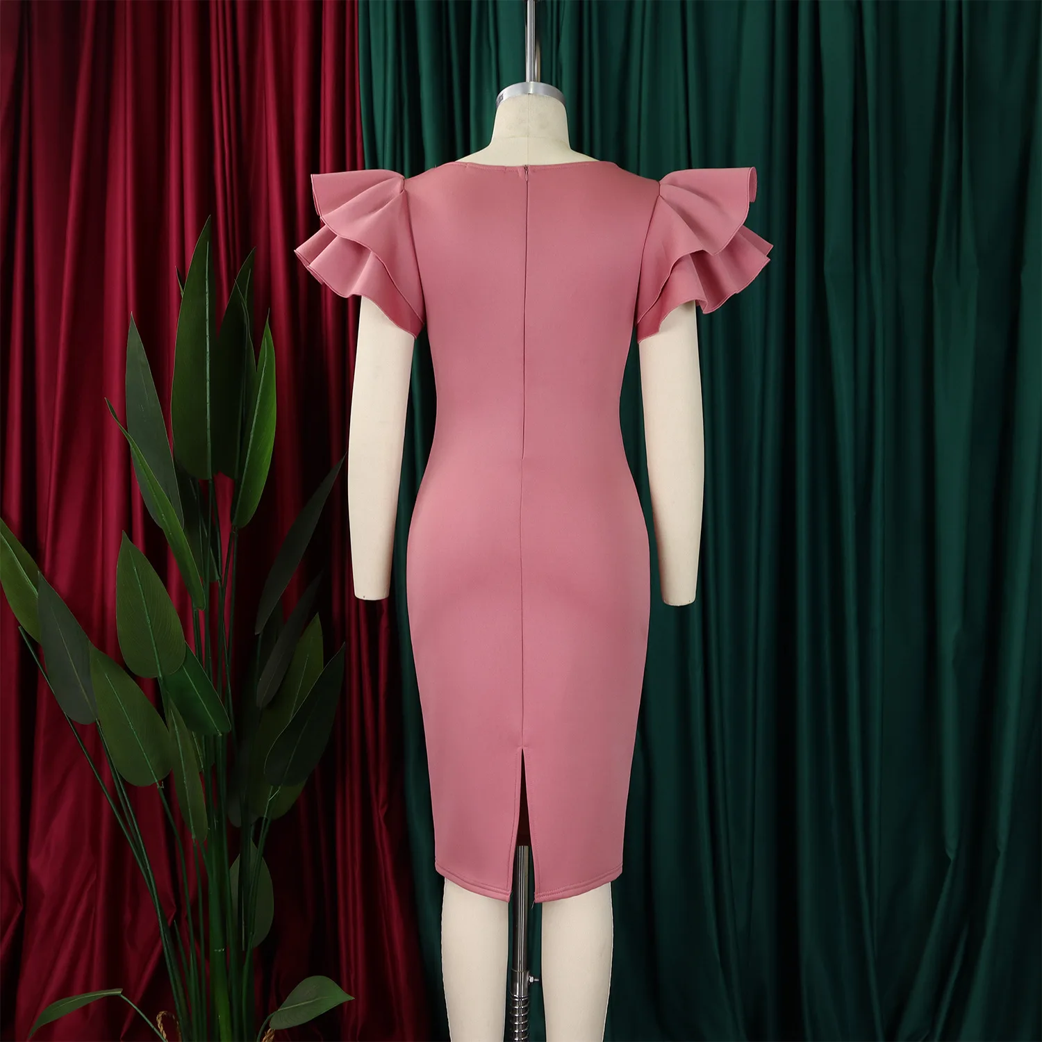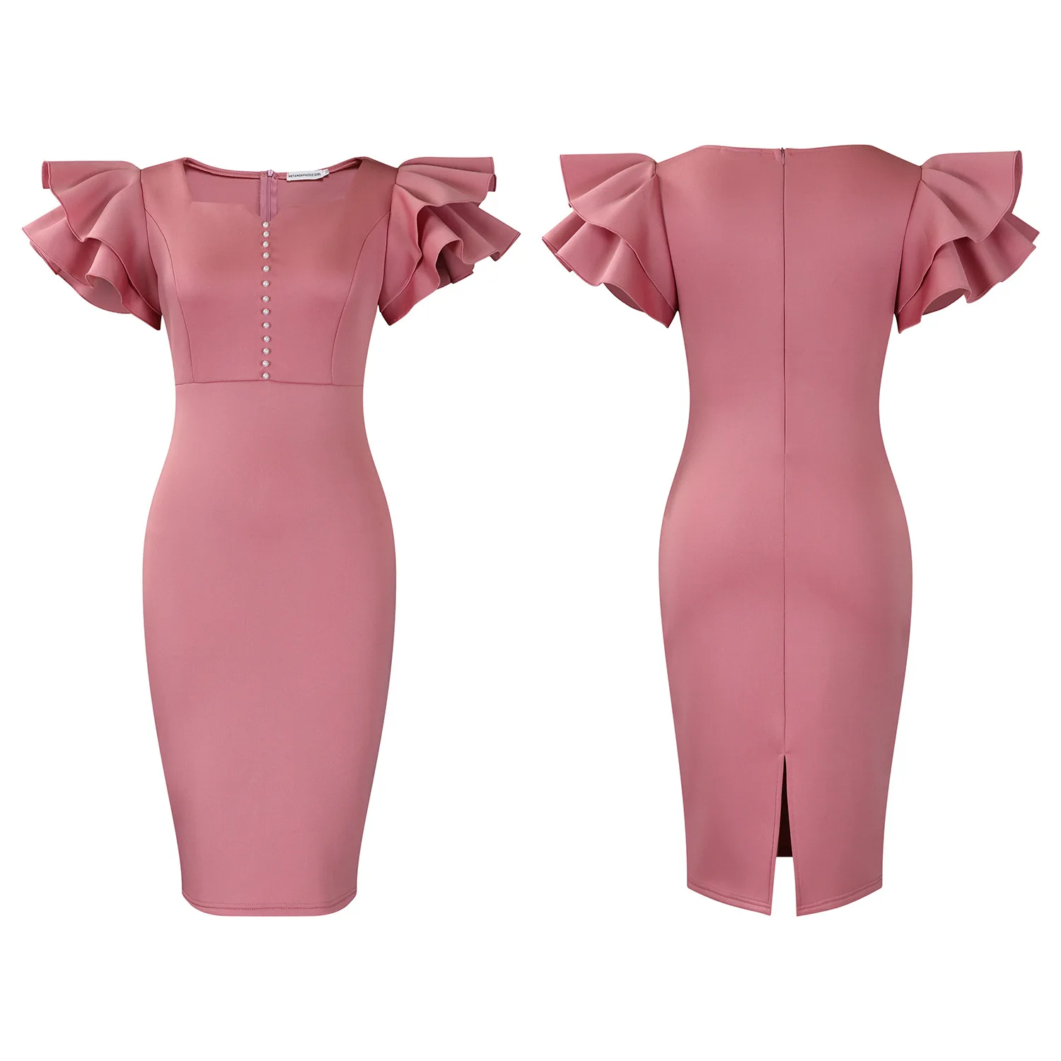 Summer Fashion Women's Nail-Beaded Lotus Sleeve Wrapped Hip Banquet Dress Cascading Style Elegant Evening Gown