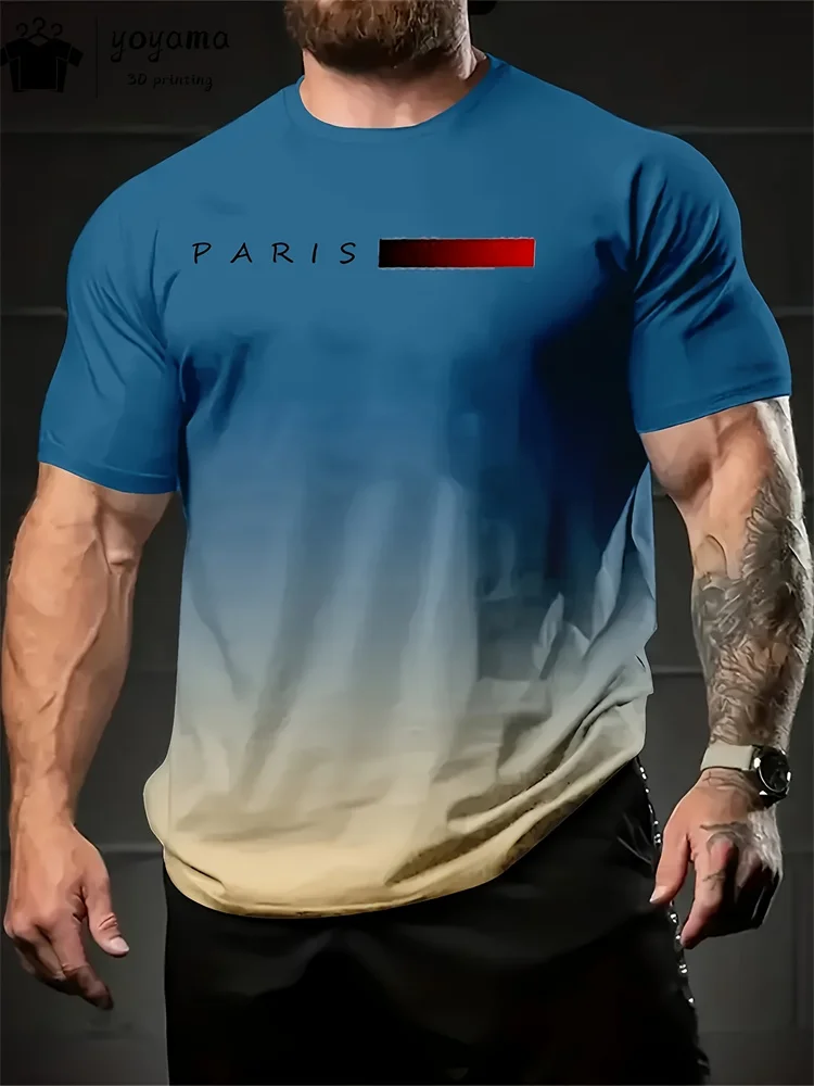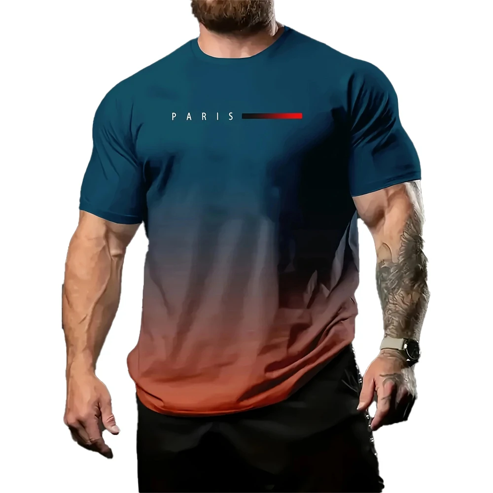 Summer Gradient Print T shirt Men Fashion Graphic T shirts 3D Print Men's Clothing Round Neck T-shirts for Men Street Rock Tops