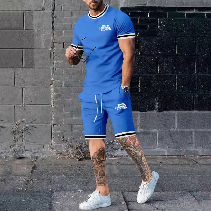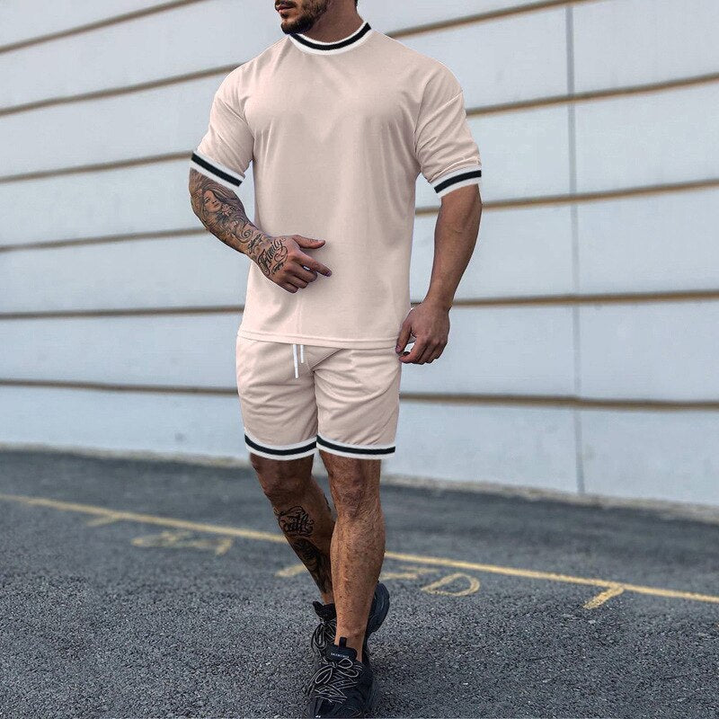 Summer Men's New Solid Color Round Neck Top Shorts Suit Male Fashion Sports T-shirt Casual Set