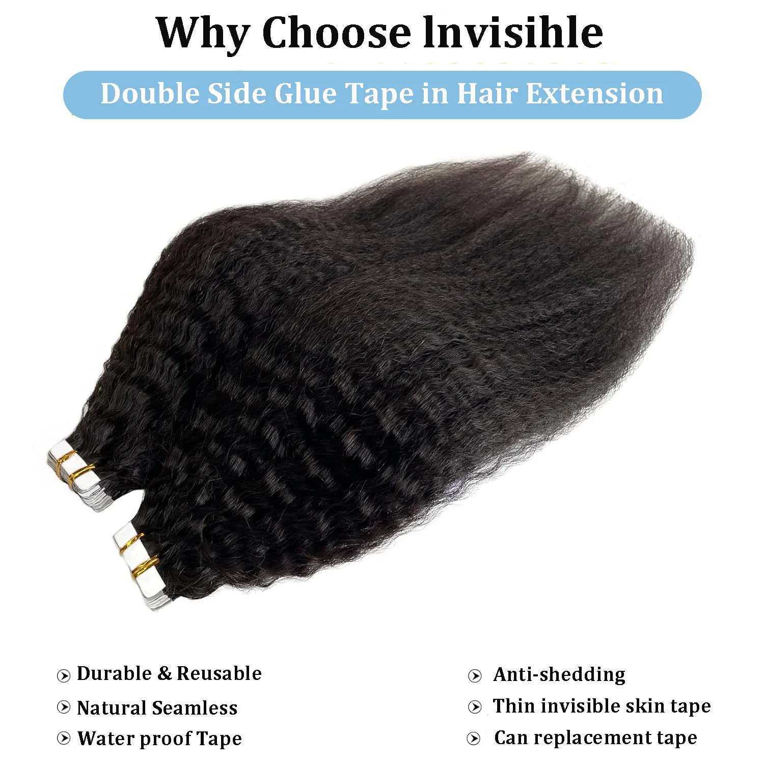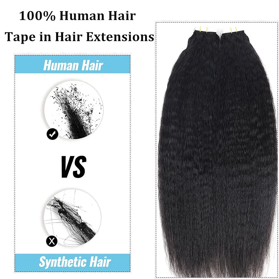 Tape In Kinky Straight Human Hair Extensions Brazilian Hair Adhesive Extensions Skin Weft Black 100% Real Human Hair for Women