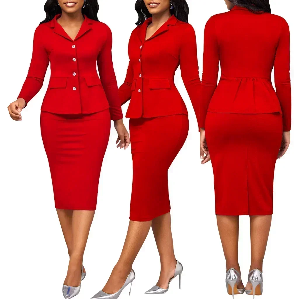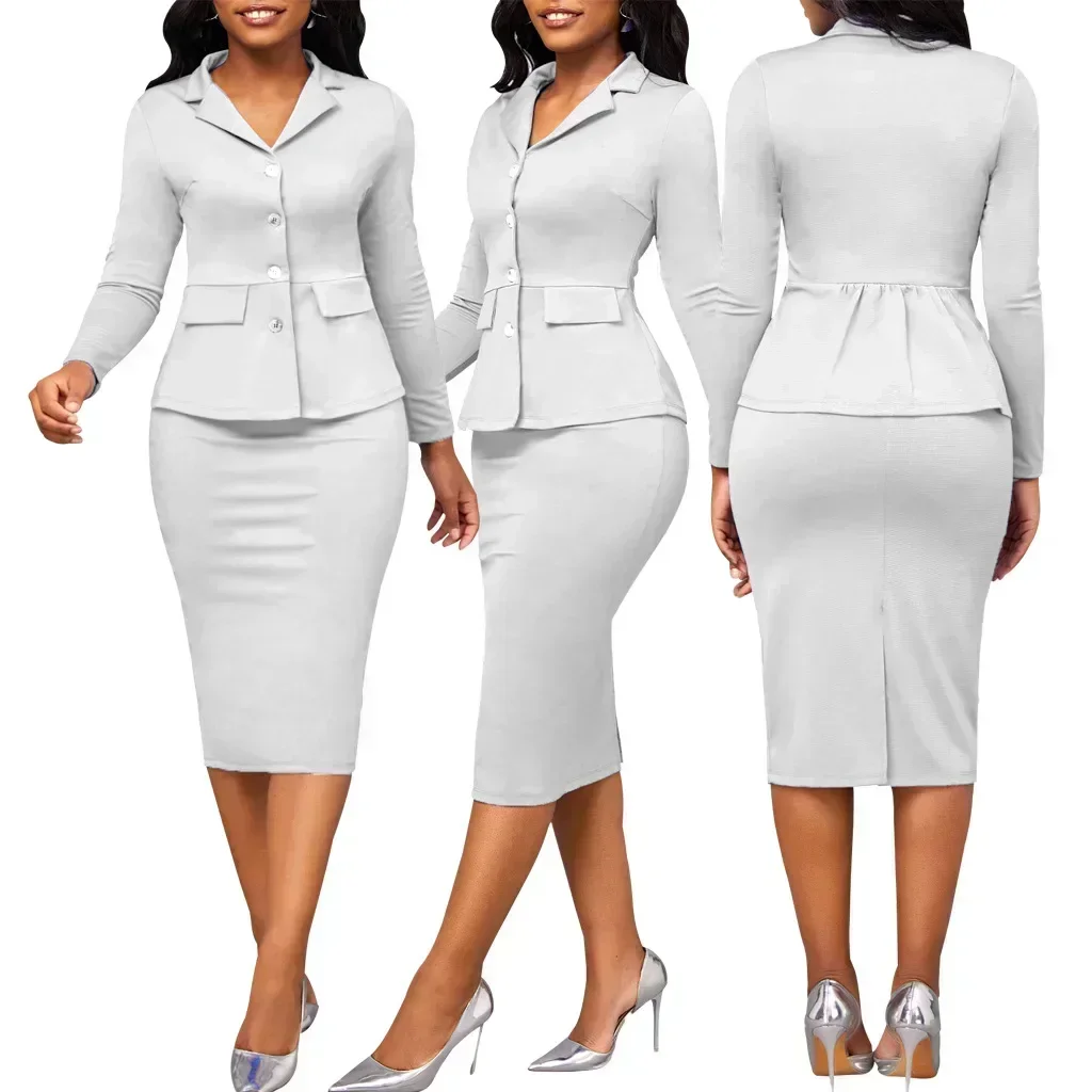 Two Piece Skirt Set Women office lady midi skirt suit work wear